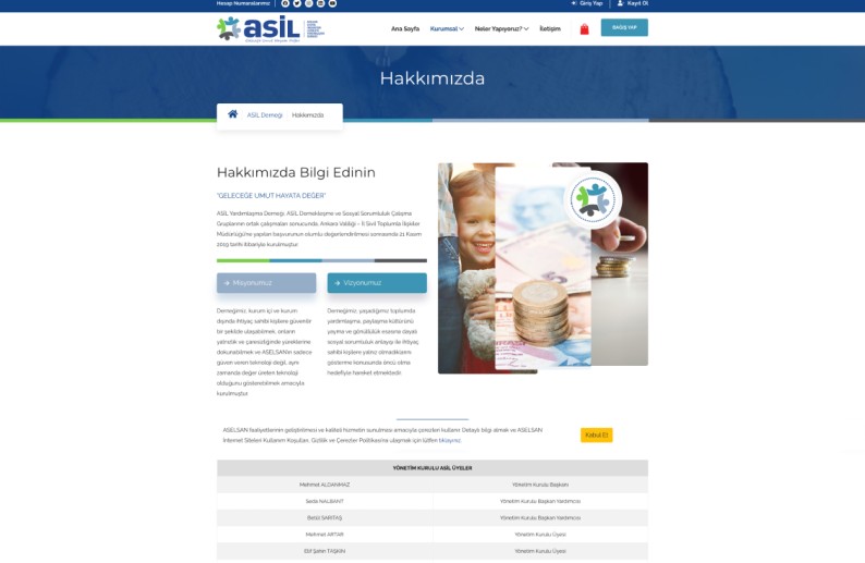Aselsan savunma sanayi şirketinin sosyal sorumluluk projesi olarak kurulan Asil Derneği, kurum içi ve kurum dışında ihtiyaç sahibi kişilere yardım etmeyi ve onların yaşamlarını iyileştirmeyi amaçlamaktadır.
